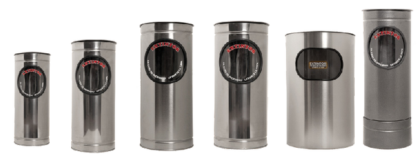 - Cilindro fabricado en lámina de acero, rolada en frío, calibre 14 y rociador con listado y aprobación UL, que se acciona automáticamente a temperaturas que sobrepasan los 68° C
