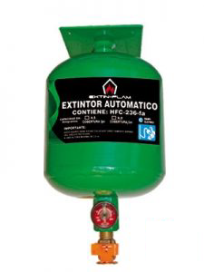 - Extintor automático de presión contenida, a base de hexafluoropropano (HFC-236-fa). También disponibles en Polvo Químico Seco, para fuegos ABC, presentación color rojo. Consulte fichas técnicas